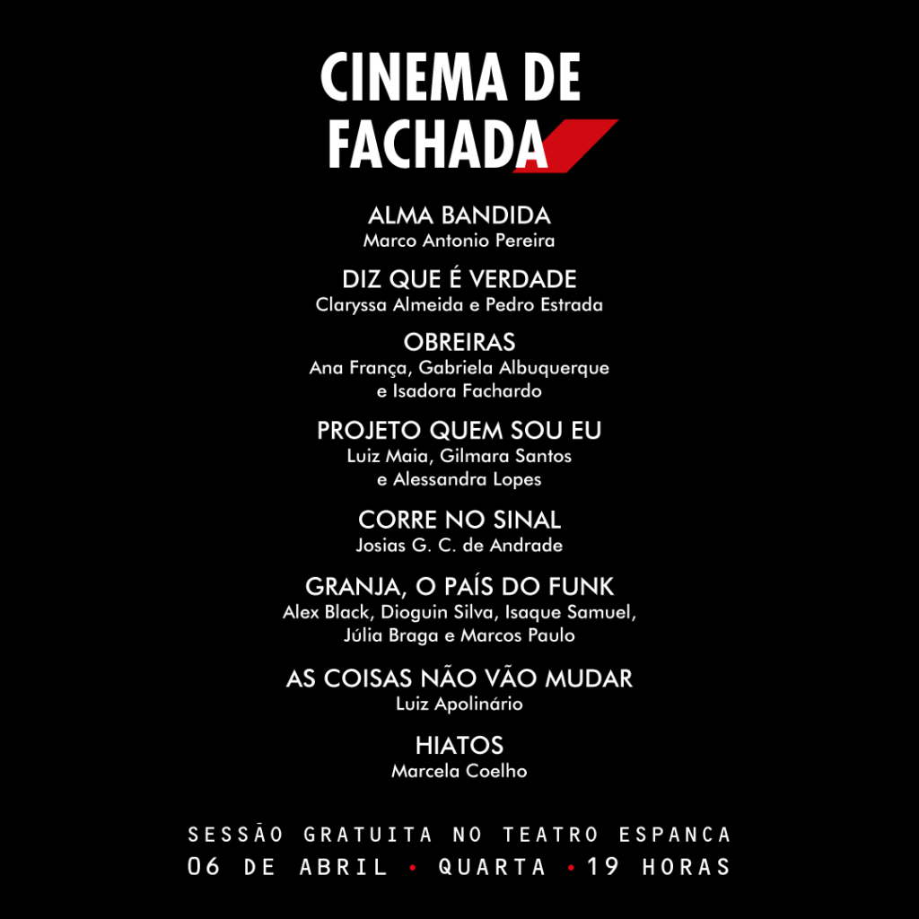 para uma pausa em meio ao movimentado #baixocentro, chegamos com a terceira edição do #cinemadefachada. são oito filmes sobre cotidiano com seus desafios, superações e belezas. tem também história de gente que sonha. e você já sabe: nosso cinema é pra todes. então se liga nos filmes.