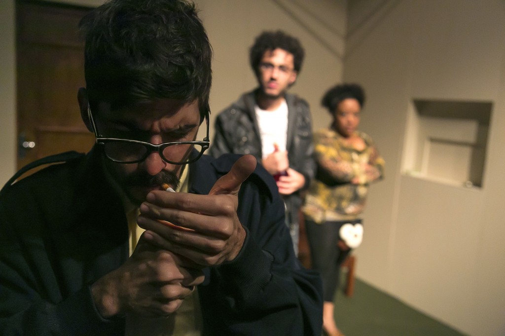 Atores: Grace Passô (Nina Hagëken), Gustavo Bones (Michael Expósito) e Marcelo Castro (Peter Expósito)
